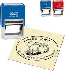 Personlig adressstämpel med design inspirerad av gammal järnväg, i oval form med måtten 59 x 39 mm. Denna automatiska stämpel är perfekt att använda som företagsstämplar, namnstämplar eller kontorsstämplar. Produkten finns tillgänglig på Amazon.se.